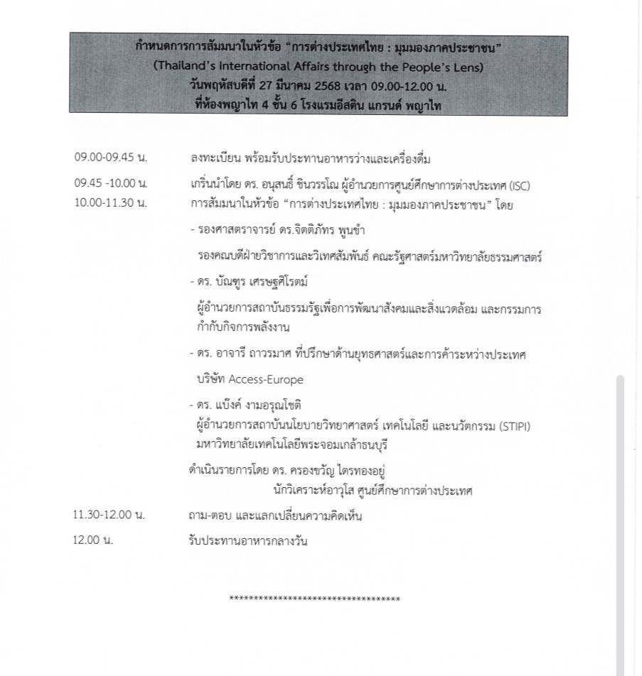 จัดโดย สถาบันธรรมรัฐเพื่อการพัฒนาสังคมและสิ่งแวดล้อม